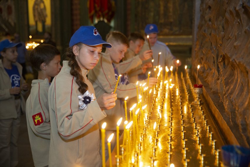 После музея ребята посетили Главный храм Вооруженных Сил Российской Федерации. Его построили к 75-летию Победы в Великой Отечественной войне. Храм и все, что связано с ним, пропитано символизмом в память о страшном времени борьбы с фашистами. К примеру, диаметр барабана главного купола — 19 метров 45 сантиметров в честь окончания войны 1945 года. А высота малых куполов — 14 метров 18 сантиметров (1418 дней и ночей длилась война 1941-1945 годов).